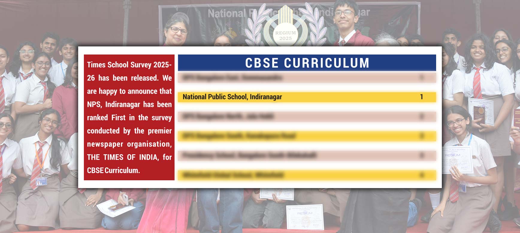 National Public School, Indiranagar is a co-educational school, founded in 1982 under the chairmanship of Dr. K. P. Gopalkrishna. This is the third school set up by Dr. K. P. Gopalkrishna after NPS Rajajinagar and NPS Chennai.