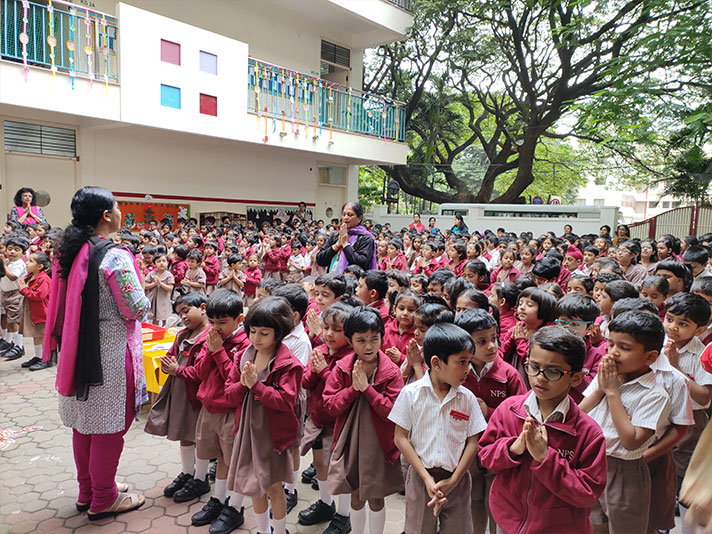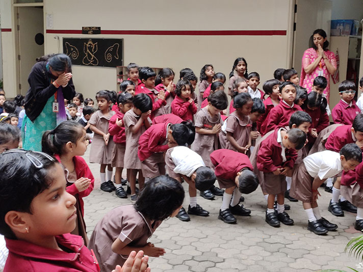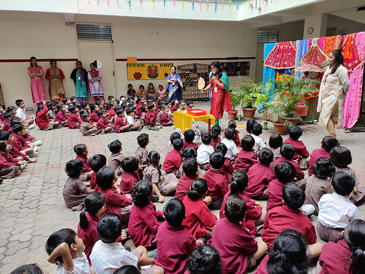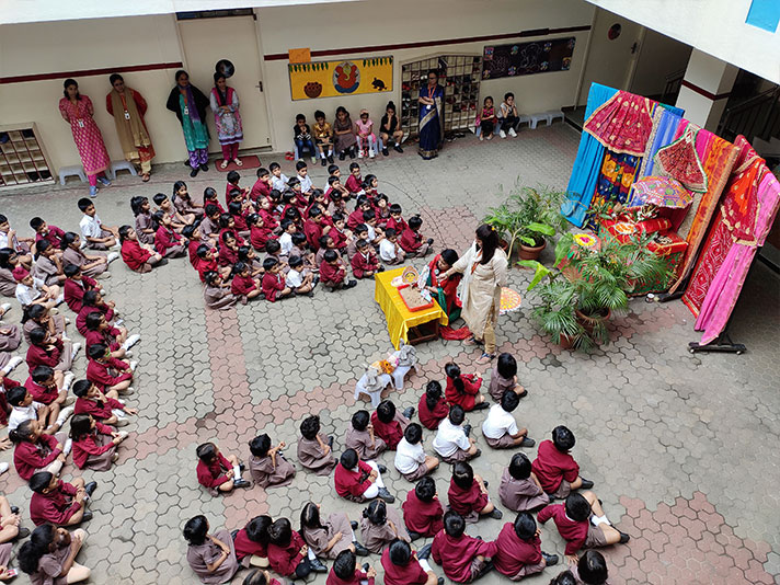 Ganesh Chaturthi, the festival of the Elephant God, is eagerly awaited all over the country. The children of KG section displayed the same eagerness in celebrating the festival on 3 September 2019. The air was filled with gaiety and the spirit was aesthetically captured by the colourful and tastefully decorated Ganesha Pandal in the KG Building. The children were welcomed into the school amidst enchanting songs, which created positive vibes all around. This was followed by a storytelling session about the birth of Ganesha for the students using stick puppets. Students sang the Ganesha Vandanam as they performed the Aarti. The entire event was marked by festive celebration mixed with solemnity befitting the occasion. It was a day that the students would treasure for a long time to come.