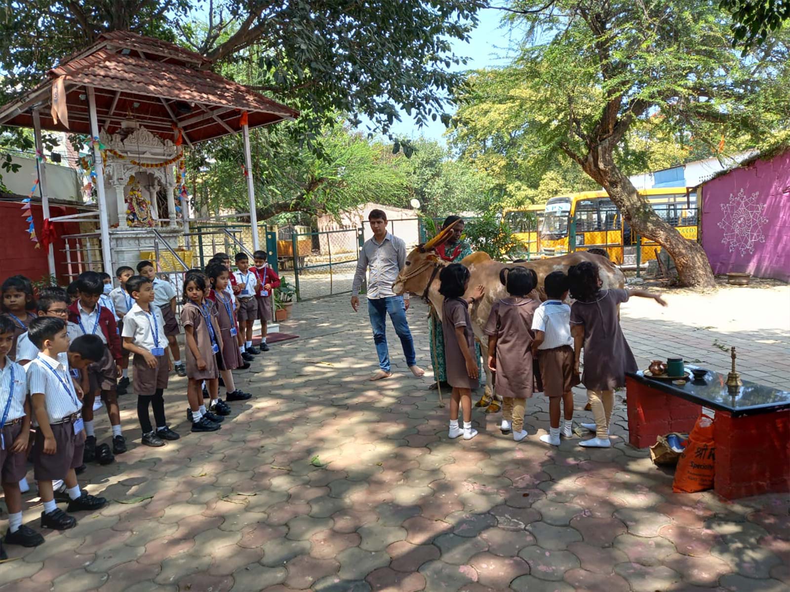 Children eagerly observed how cows are cared for and learned about their daily routine, diet, and the significance of gaushalas in protecting and nurturing these gentle animals. They were fascinated to see how the caretakers ensured the cows were healthy, clean, and well-fed.