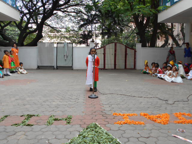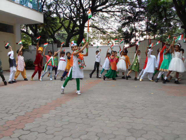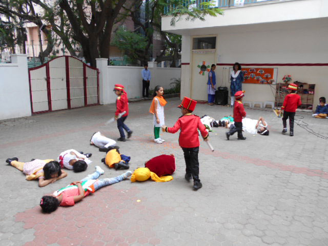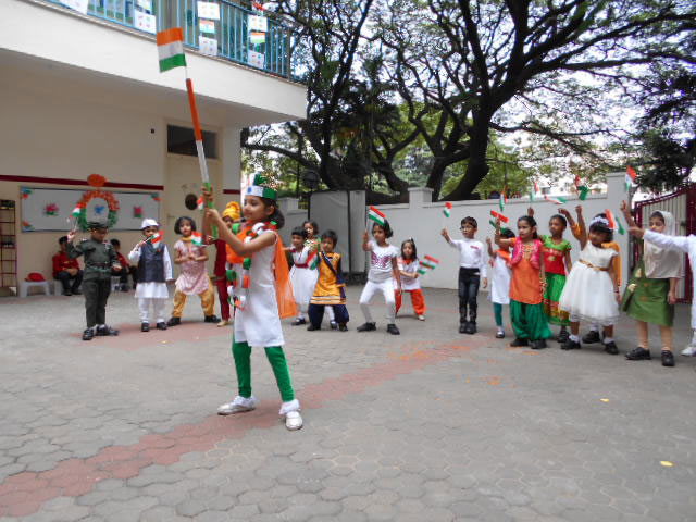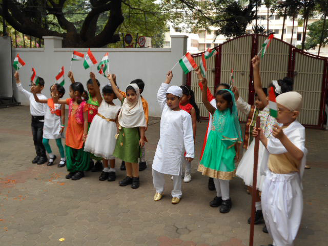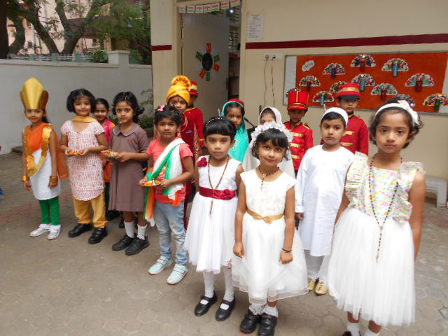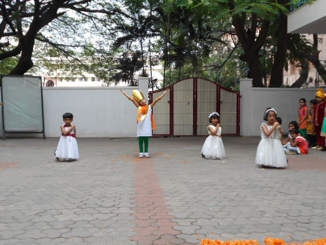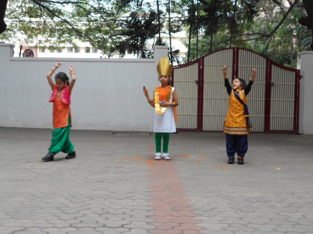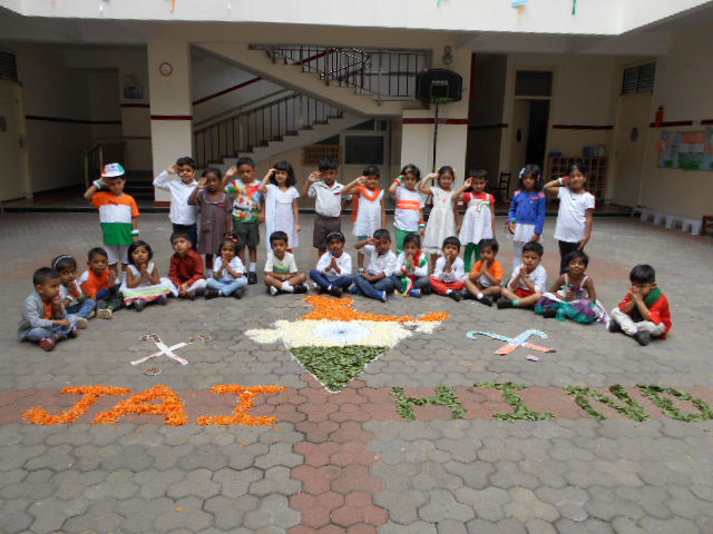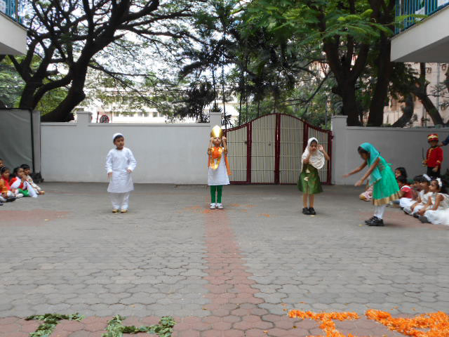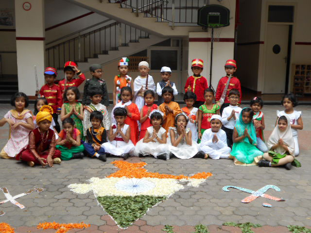 The 73rd Independence Day of India was celebrated by the students of Kindergarten. The students came dressed in tricolours. Patriotic songs were played as the students came into school. The building was decorated with the craft made by students for Independence Day and a rangoli was made using tricoloured flowers on the map of India. In an attempt to showcase the diversity between the cultures and unity amongst the religions of India, the students of KG 2 A put up an assembly on the freedom struggle of India in the pre-independence era pertaining to the Independence Day theme on Wednesday, August 14, 2019. The ill-treatment by the British against the high-spirited response and relentless effort by our freedom fighters like Mahatma Gandhi, Jawaharlal Nehru, Netaji Subhash Chandra Bose was showcased with a well-executed combination of music, movement and dialogue. The symbolism of Mother India combined with the personification of each religion further strengthened the impact of the skit. The visual learning was a treat to watch and would leave a long lasting impact on the audience.