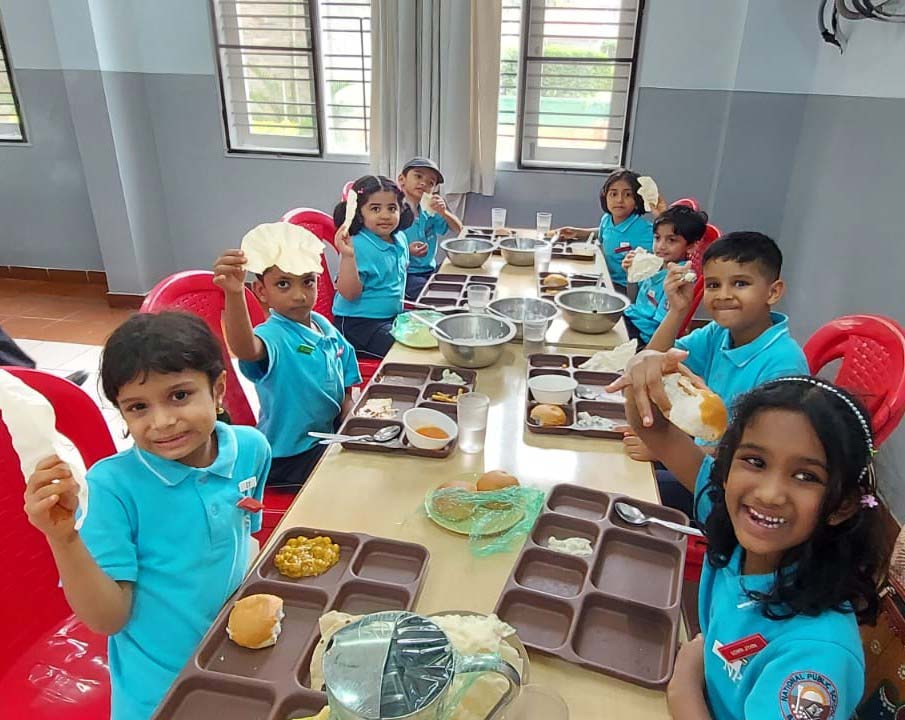 Later, the children gathered in the auditorium to watch a delightful movie, which kept them thoroughly entertained. With appetites renewed, they were treated to a sumptuous lunch, relishing every bite.