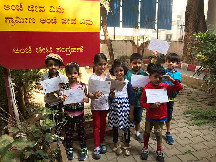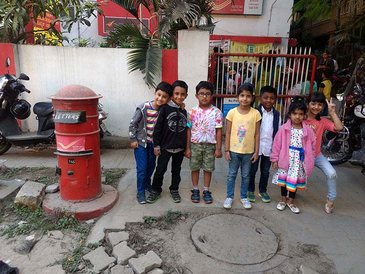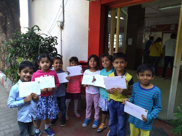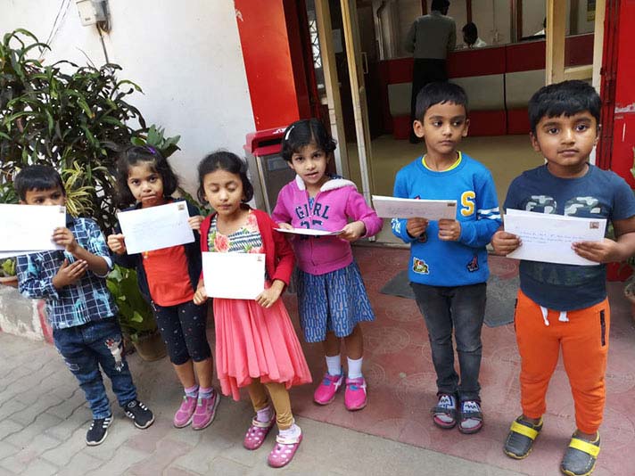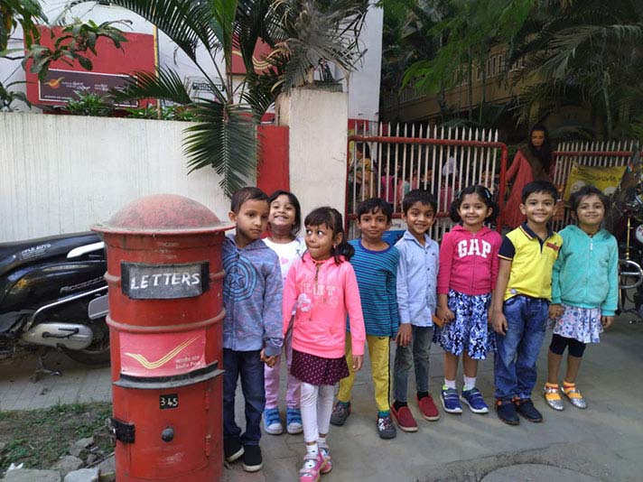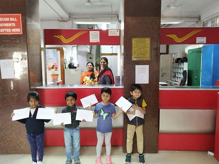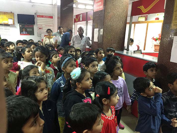 At the Post Office it was not only the children who were enthusiastic about seeing the actual working of the place, but the staff there were completely taken in by our children. The Post Master so painstakingly explained how the postal system works. The children posted their card, saw it being cleared and stamped.