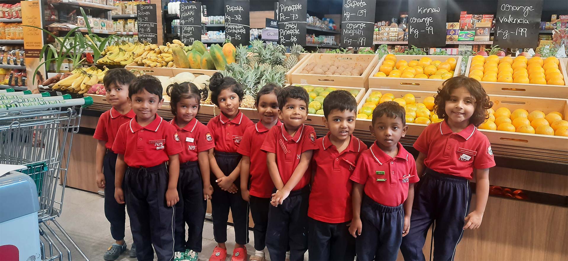 On 5 November 2025 the Montessori Freshers went to Namdhari supermarket for a field trip. Everyone was very excited as we boarded the bus early in the morning. When we arrived, the store manager welcomed us and showed us around.