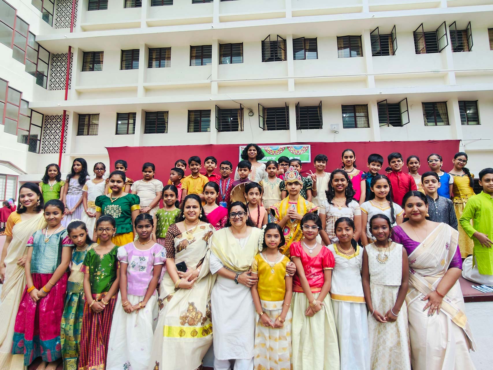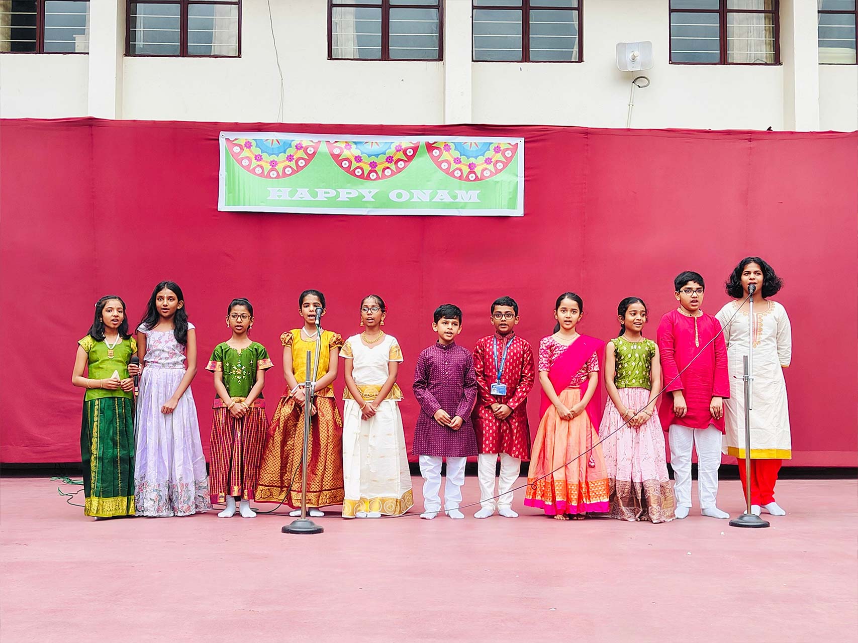 Students from Grades 1 to 12 celebrated the festival with a vibrant cultural programme. A colourful pookalam at the reception welcomed everyone, while confident Grade 5 comperes kept the programme flowing smoothly. Lively dance performances, a melodious medley of Onam songs, and an engaging quiz kept the audience involved. A graceful dance performance by the teachers was a delightful highlight and drew warm applause.