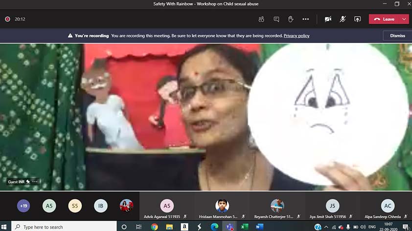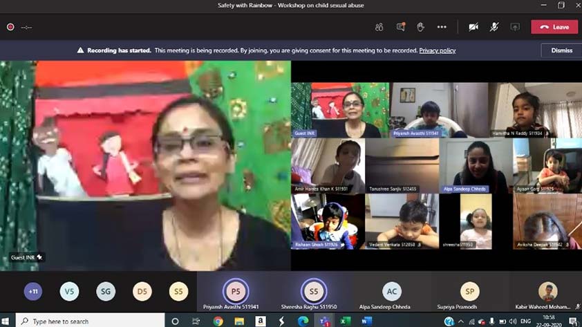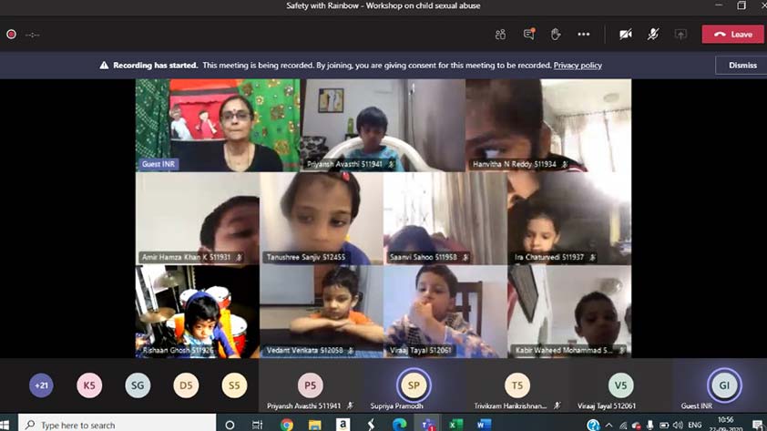 National Public School, Indiranagar and Young Indians Thalir, an integral part of Confederation of Indian Industry, joined together to organize a virtual workshop for KG1 students, Safety with Rainbow. This was executed on September 22nd 2020, through a fun puppet show to create awareness on child sexual abuse. The facilitator highlighted the awareness of feelings that a child undergoes – happy, confident, sad and scary, through a song. The workshop emphasized on safe and unsafe touch through a puppet role play, leading to making the students comprehend about how they could and should share their safe and unsafe secrets with someone they trust. Through the talk the children were reassured, that in such situations they are never wrong, hence they need not fear to share unsafe secrets. There was also an emphasis on the fact that not only must they share, but they must share until they are heard. The session was engaging as it had a combination of puppets, story, role play and songs and an important learning for the little ones.