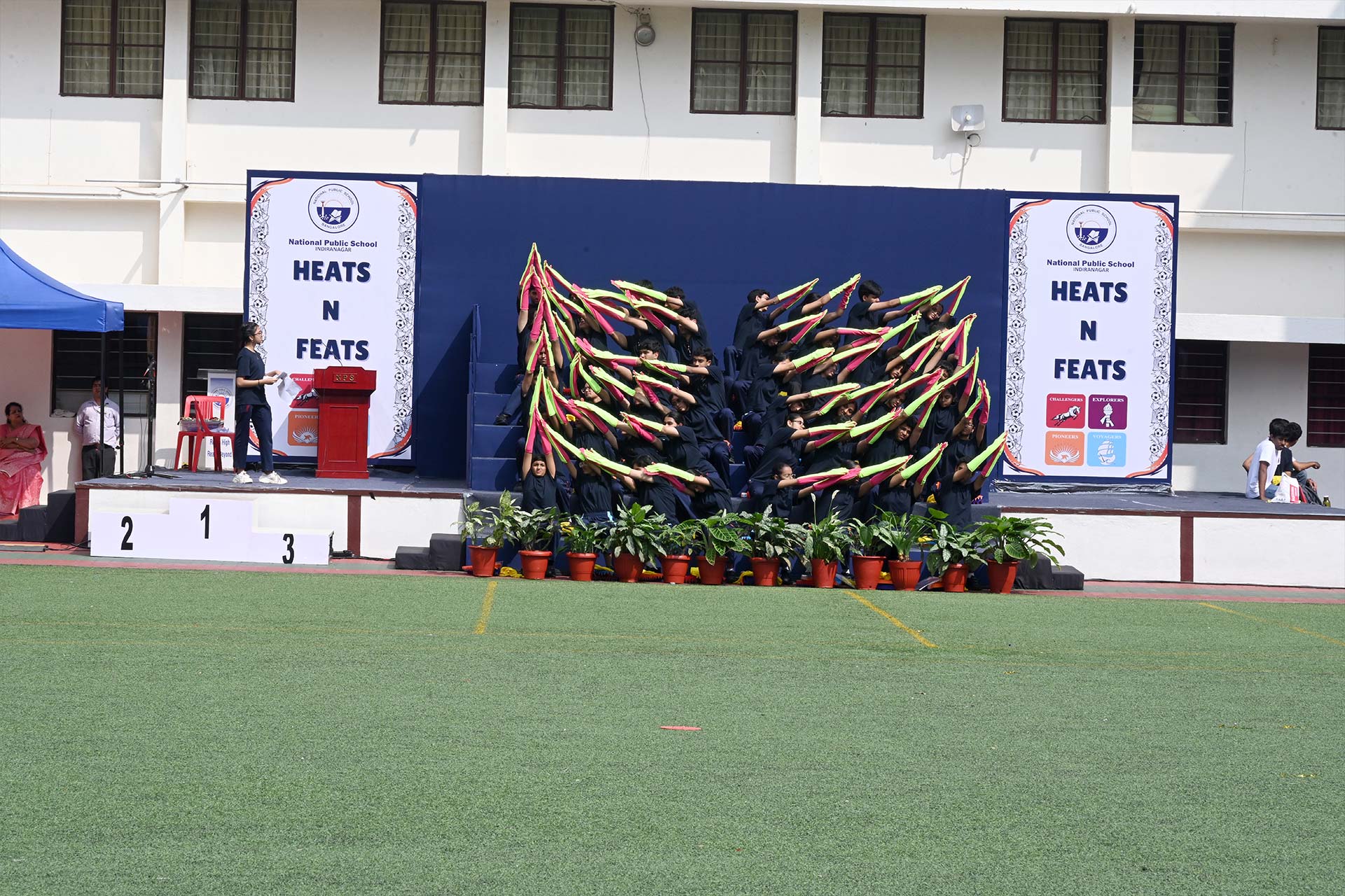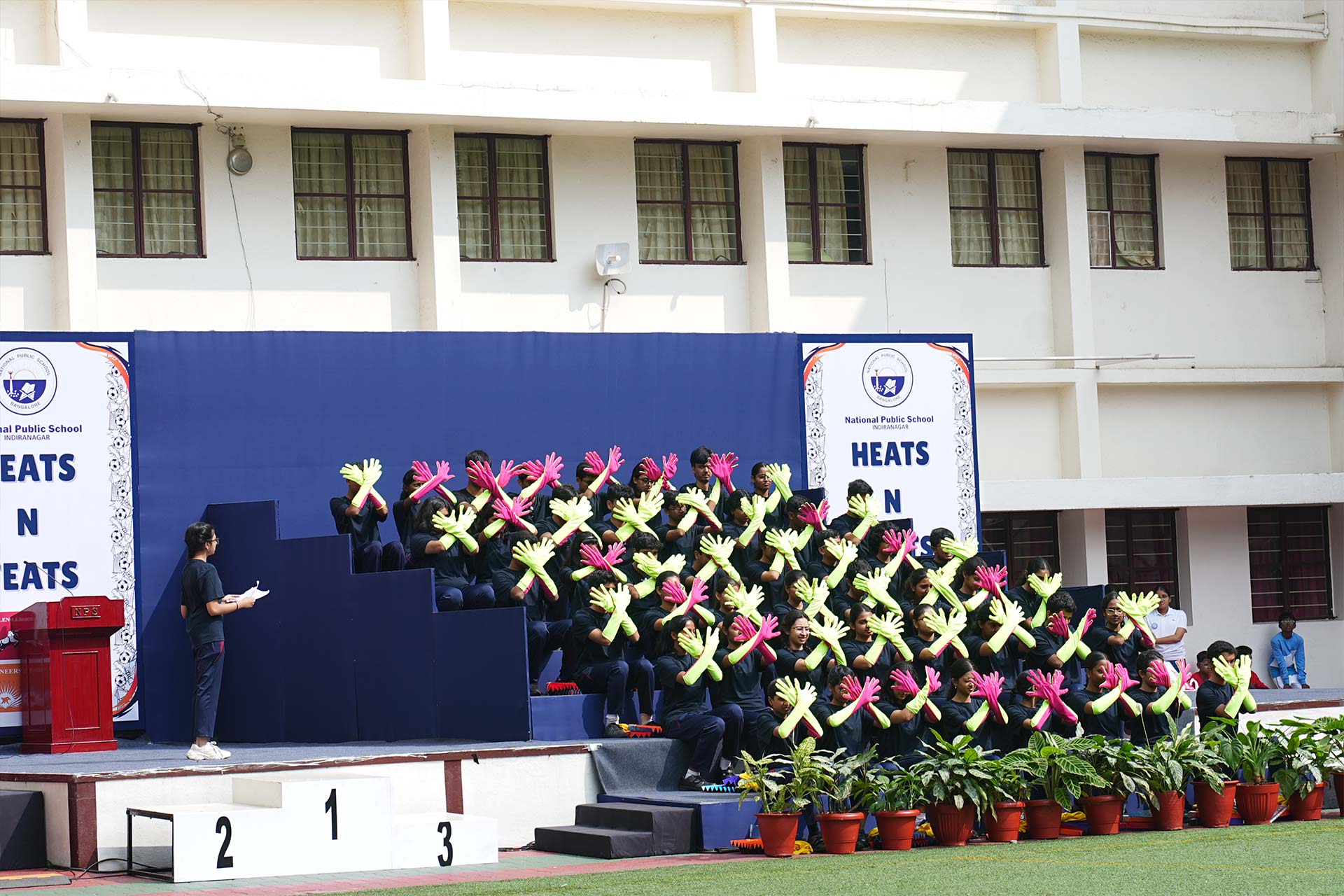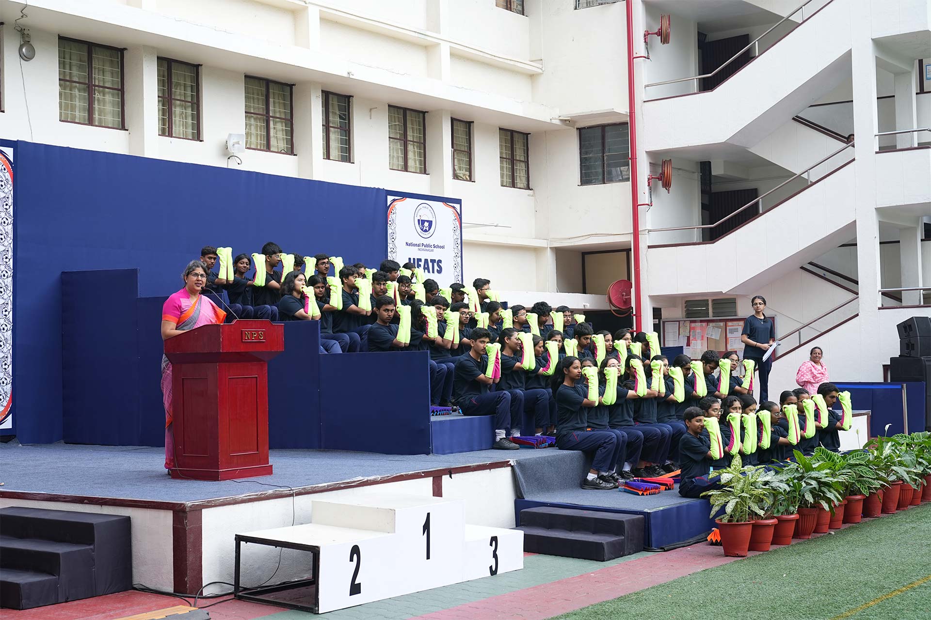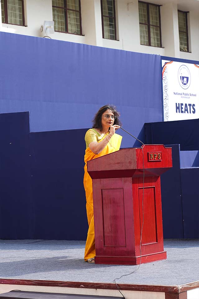 Heats and Feats 2025, held on 14 November 2025, was a vibrant celebration of energy, camaraderie and sportsmanship. The event commenced with the arrival of dignitaries, our Vice Chairperson, Dr Bindu Hari, Mentor Principal Ms Shantha Chandran and Principal Ms Shweta Pathak Chand escorting the Chief Guest, Major General Mohit Mahendroo.