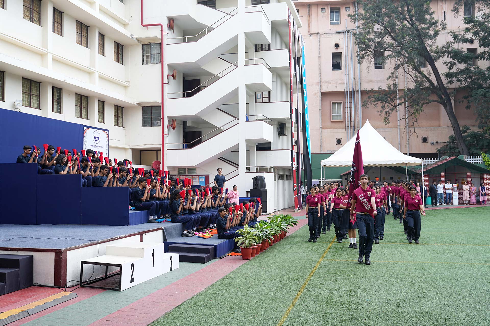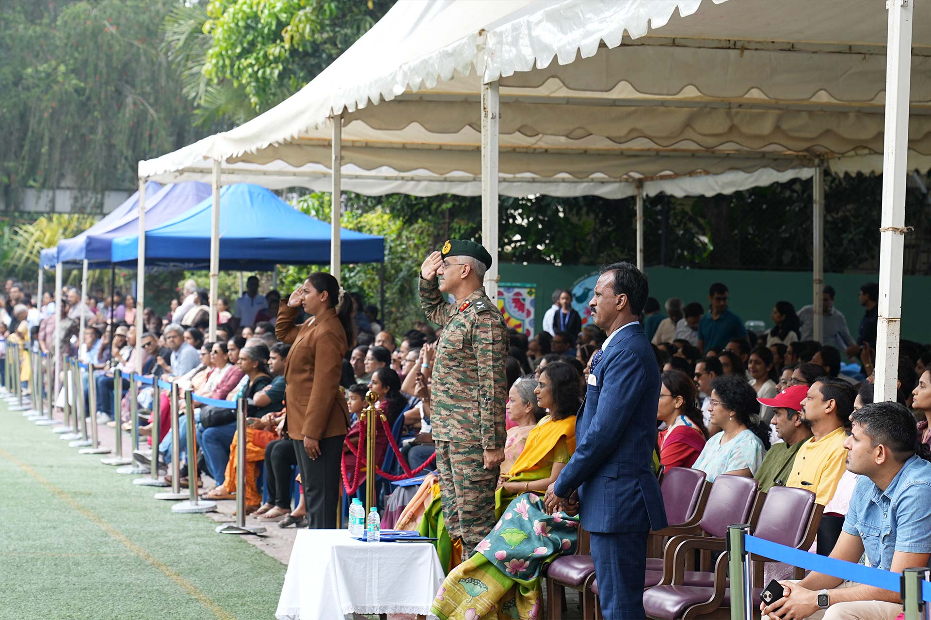 The ceremony opened with the General Salute and Torch Lighting, with the torch carried by athletes representing football, fencing, shooting, and badminton. In her welcome address, Dr Bindu Hari encouraged students to believe in themselves and remain resilient, while the Chief Guest highlighted sports as a source of strength, perseverance, and teamwork.
