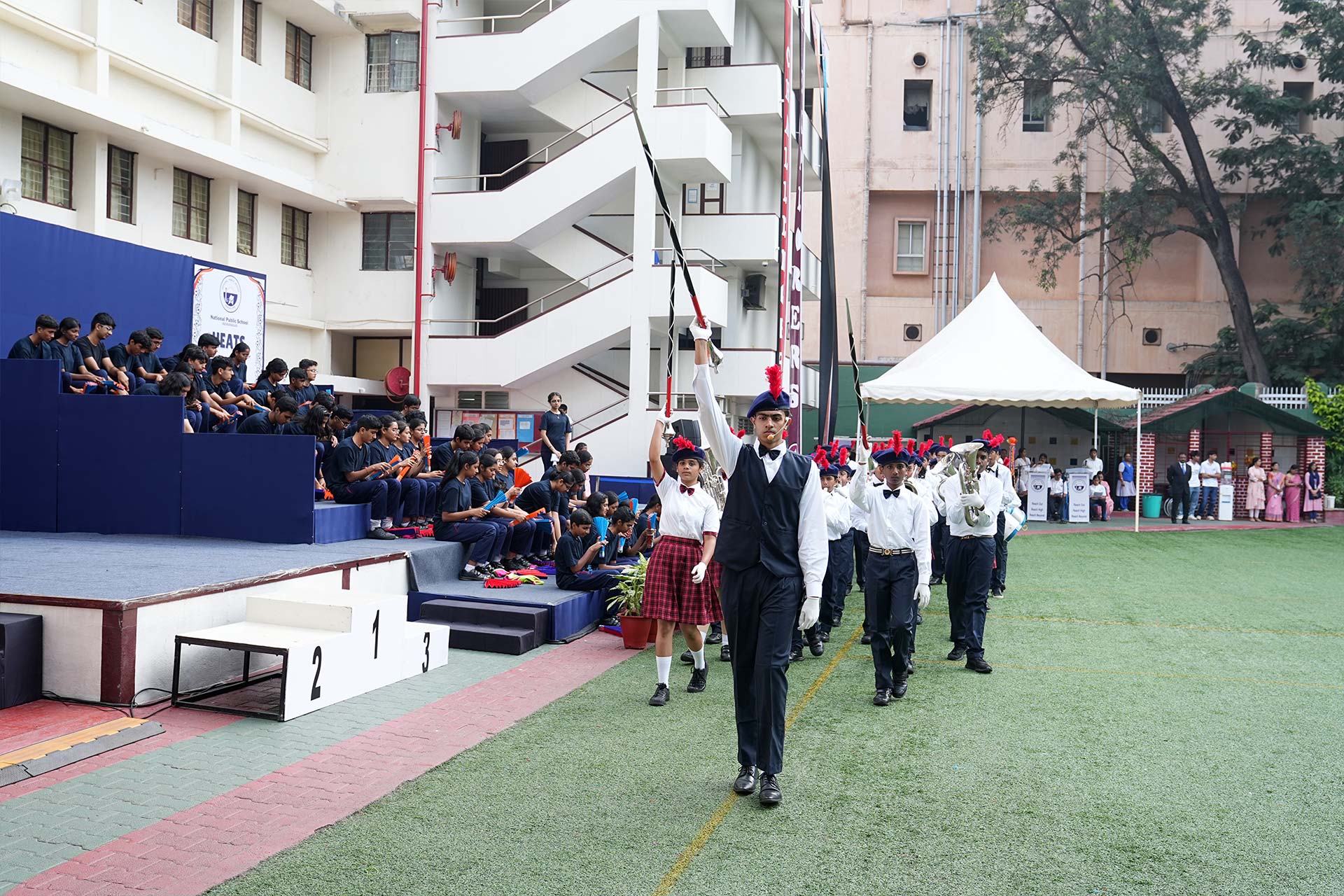 The disciplined march-past by the four houses set the stage for expressive drills by Grades 6 to 12, portraying humanity’s evolution from natural harmony to the industrial and digital epoch and finally to a future guided by human values. The day progressed with athletic events, football matches, and a live chess match combining agility and strategy. Prize distribution, and a heartfelt Vote of Thanks marked a memorable conclusion to Heats and Feats 2025.