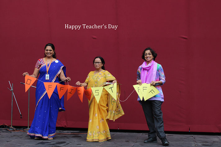 The Student Council along with the other students had planned and organized an array of events to acknowledge the importance of teachers in their daily school life. As they recalled fond memories of the various subjects and their teachers who taught them, they called on stage teachers from the various departments to show their appreciation and gratitude with handcrafted banners. This was followed by an interesting musical ensemble specially performed for the teachers by a talented trio who dedicated a mash-up of a popular classical song, with keyboard, cahon and the mridangam. On a finishing note two melodious numbers were rendered by the students specially for their teachers.
