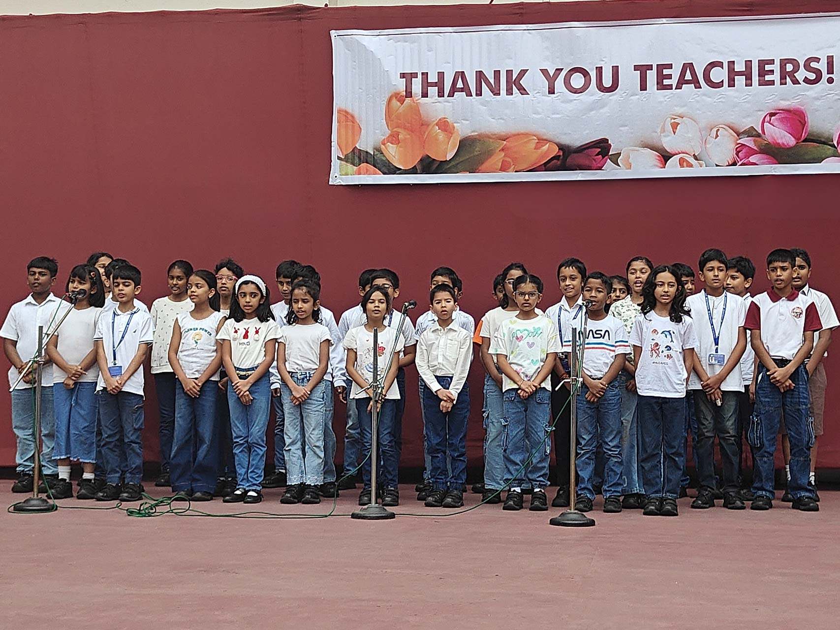 On 25 August the programme commenced with a special assembly dedicated to honouring the invaluable role of teachers in shaping young minds. The event began with a solemn prayer and was followed by a series of well-coordinated cultural performances. Students presented dances, songs, and skits as heartfelt expressions of gratitude and admiration for their teachers, making the celebration both meaningful and engaging. The Primary Section’s programme was greatly enriched by the active involvement and support of parents from the primary years (Grades 3 to 5), Ms. Ramya Venkataraman, Ms. Vinda Ramaswami, Ms. Shubha Agrawal, Ms. Tensie Das, and Ms. Alagendran, who trained and guided the students for the occasion. The Teacher’s Day celebrations were a fitting tribute to the dedication, commitment, and tireless efforts of the teaching fraternity, leaving a lasting impression on all present.