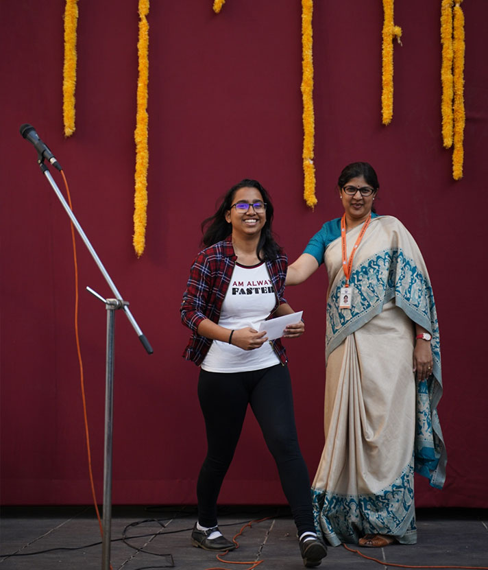 An individual award is bestowed every year, on two students – one from the Science stream and one from Commerce. This honour is a very comprehensive recognition of a student’s strength and growth, assessing all factors like diligence, love of learning, attitude, coping skills as well as the academic standing. From the Science stream, this year, the recipient was Akshara Kulkarni, and from the Commerce stream it was Nishchal Shetty.