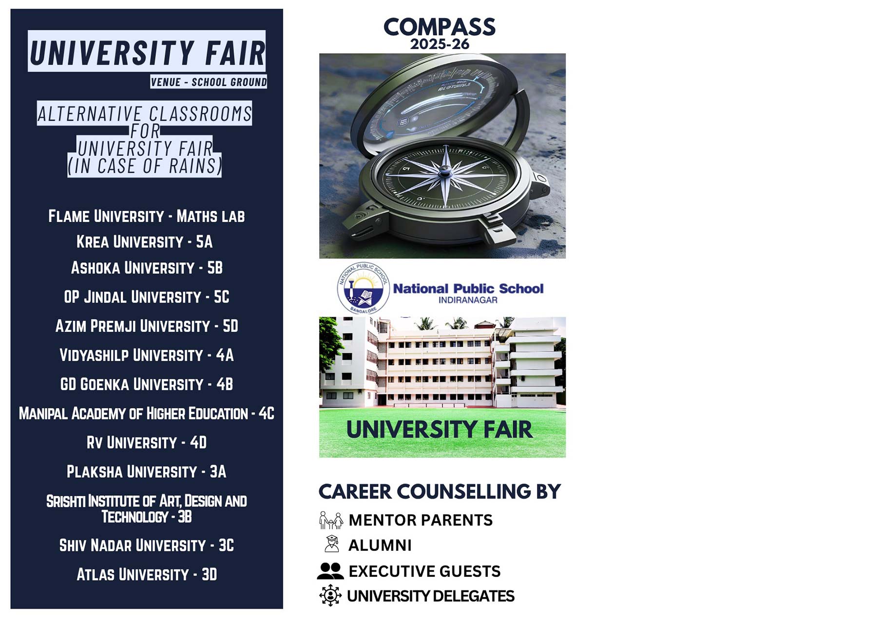 From 30th July to 2nd August 2025, National Public School, Indiranagar, hosted Compass, a four-day event aimed at helping Grade 10 students make well-informed decisions about academic streams, higher education, and career pathways. The programme began with insightful sessions by senior school teachers, who outlined the academic experience and opportunities available in the Science, Commerce, and Humanities streams at NPS Indiranagar. On the following day, students from Grades 11 and 12 shared candid accounts of their journeys, discussing the advantages and challenges of their chosen fields. These interactions, followed by an open question-and-answer session, offered the younger students a first-hand perspective.