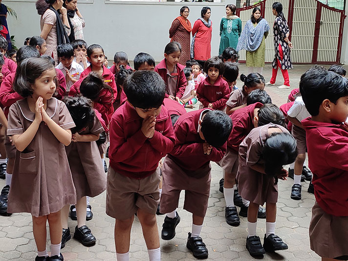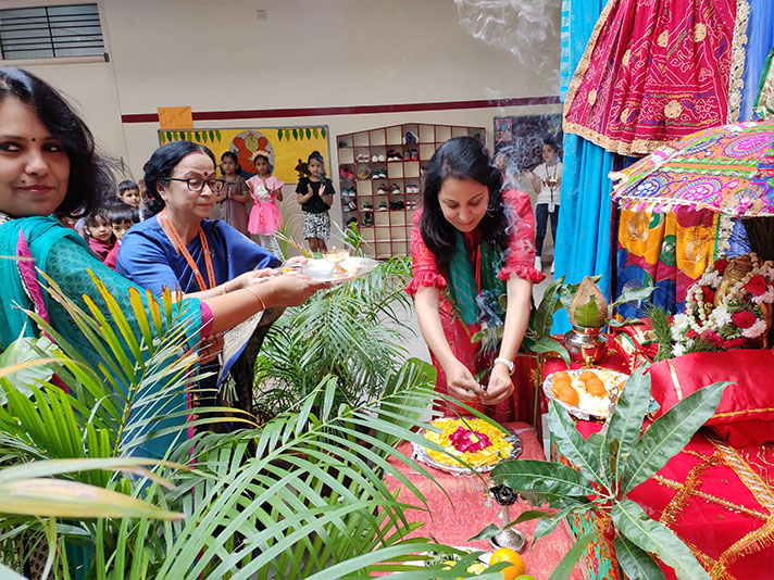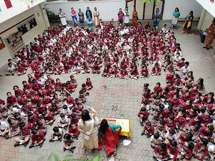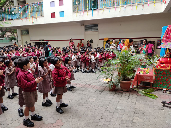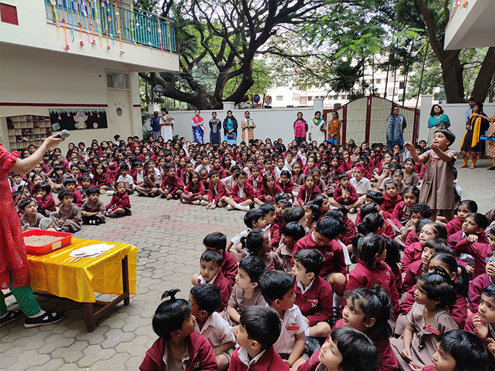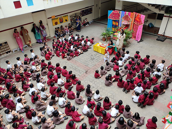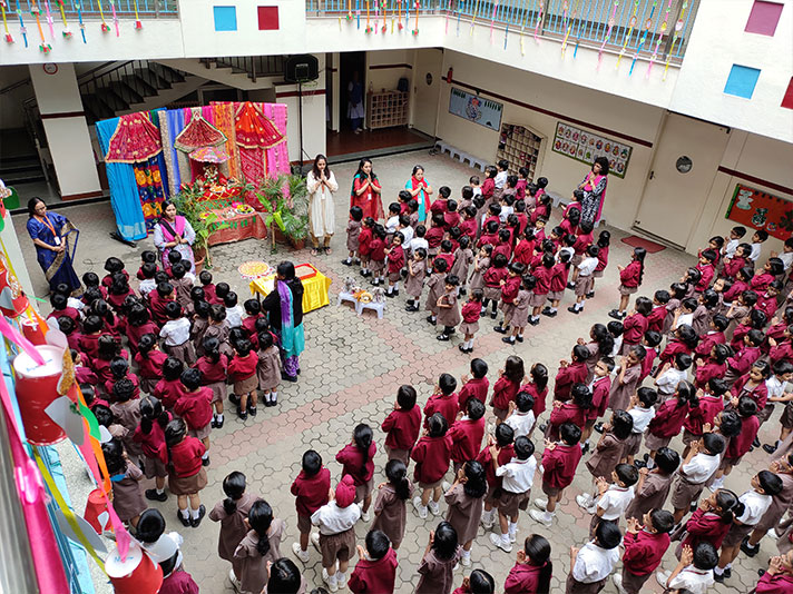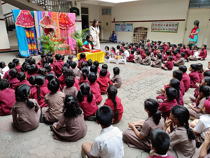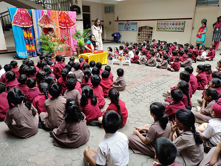 Ganesh Chaturthi, the festival of the Elephant God, is eagerly awaited all over the country. The children of KG section displayed the same eagerness in celebrating the festival on 3 September 2019. The air was filled with gaiety and the spirit was aesthetically captured by the colourful and tastefully decorated Ganesha Pandal in the KG Building. The children were welcomed into the school amidst enchanting songs, which created positive vibes all around. This was followed by a storytelling session about the birth of Ganesha for the students using stick puppets. Students sang the Ganesha Vandanam as they performed the Aarti. The entire event was marked by festive celebration mixed with solemnity befitting the occasion. It was a day that the students would treasure for a long time to come.