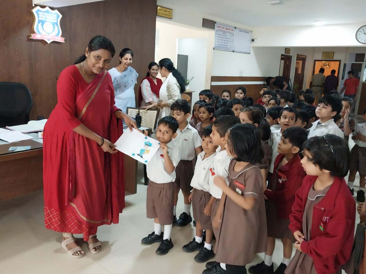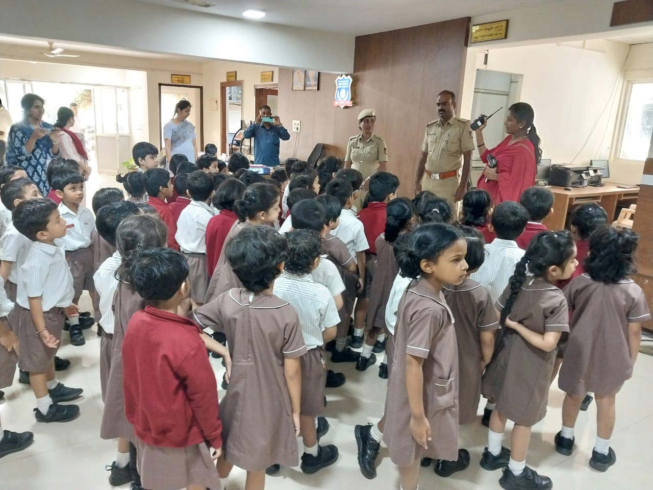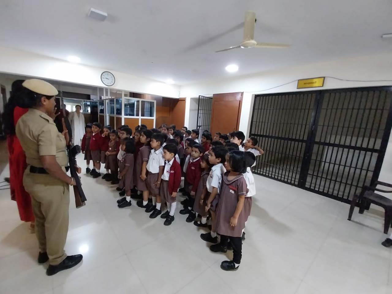 A field trip to HAL Police Station was organised for the Kindergarten students of National Public School, Indiranagar, on Friday, 28 September 2024. The friendly sub-inspector, Ms Vindhya Rathore, spoke to the students about the duties and responsibilities of police personnel, and took them around to show them the different sections of the police station. She also showed the tools used by them and had a short interaction with the young and curious onlookers. The children’s queries were patiently dealt with, making the overall experience memorable for the little ones. A big thank you to the personnel at HAL Police Station!
