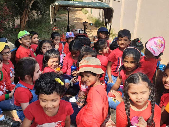 The annual picnic for kindergarten students of NPS was organized at Enchanting Acres on Friday, 10 January 2020. Students trooped in early to school, full of enthusiasm and filled with anticipation of a day of unlimited fun and excitement. The dress for the day was blue jeans and red T-shirt, in which the children looked relaxed and resplendent. It set the mood for the day. The gleam in their eyes spoke eloquently about how they intended to make this a day to remember. The celebratory mood began during the bus ride to the venue itself, with the students listening to and singing their favourite songs. On arrival at Enchanting Acres, they were ushered in for a sumptuous breakfast, which came as a welcome energizer for the students. Fully replenished, they plunged headlong into the activities which were planned for them. The fun activities included potting, animal feeding, pottery and leaf printing. The highlight of the trip...a tractor ride, which was an absolute novelty for them. The series of activities was followed by a delicious lunch and a surprise serving of ice-cream which lit up the eyes of the little ones. All good things, though, have to come to an end and the children finally boarded the bus for the return journey to the school. One could sense their eagerness to share their fun filled experiences with their parents. It was indeed a day well spent, and an occasion to remember for the little ones./p>