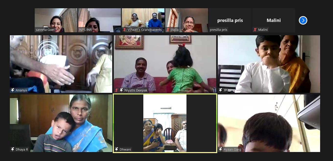 They are inferred the title ‘Grand’parents' for the very reason that they are GRAND in the true meaning of the word. The very special persons in the lives of the Kindergarteners of National Public School, Indiranagar came together on a virtual platform on Saturday, 18 September 2021. The beloved grandparents of the little ones were able to join from different locations and what a surprise we all were in for!! Beginning from their ease in handling the virtual meet, to their introductions, which followed with an array of creative expressions through songs, poems, slokas, stories, dance and more, to their infinite energy and sportsman spirit in playing the challenging organized indoor games, to their heartwarming expression of gratitude to the teachers for making the day special for them, to the endless blessings they left back while bidding goodbye, were all the perfect package of a fun filled, memorable day for all! They were a live example of the saying ‘Age is just a number!’ It was a wonderful opportunity for the grandparents to be a part of their grandchildren’s school day, meet their teachers, see them play, hear them sing and more. And likewise, the grandchildren too cheered their grandparents all the way as they played games with the ‘Never give up’ attitude! A day etched in our memories, we bid farewell to each other with the hope to meet soon some day.