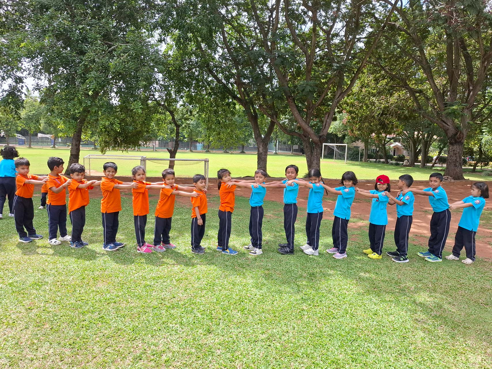 The air was filled with excitement on the morning of July 17th as the Seniors and Juniors of the Montessori eagerly prepared for their much-anticipated picnic to The International School Bangalore (TISB). The day began with cheerful faces entering the school premises, and soon the buses were lined up, ready to embark on a day of fun and adventure. With wide smiles and enthusiastic waves to their parents, the children boarded the buses, brimming with joy.