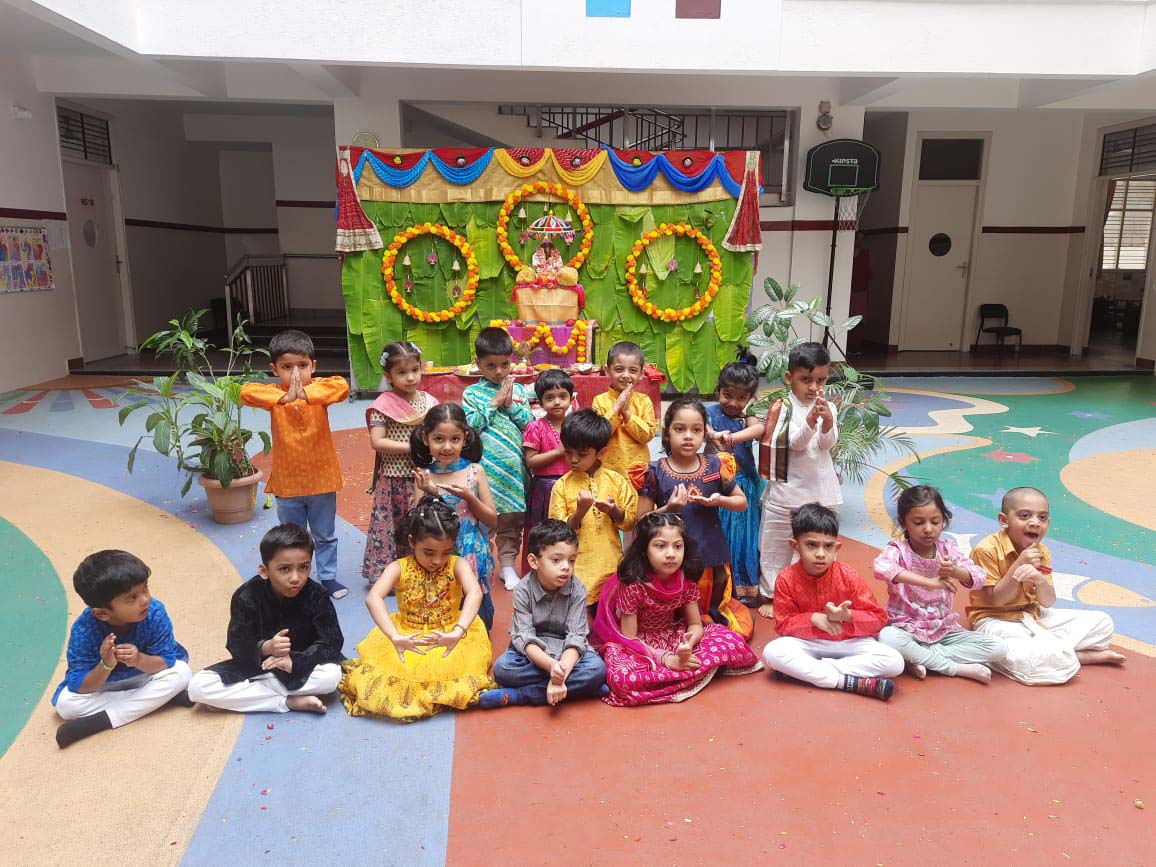 On 6 September 2024, Montessori students celebrated Ganesh Chaturthi with great fervour. Dressed to the nines in ethnic wear, they recited a shloka and watched a beautiful didactic story about Ganesha’s devotion towards his parents. A quiz about it followed which got the freshers highly enthusiastic about answering.