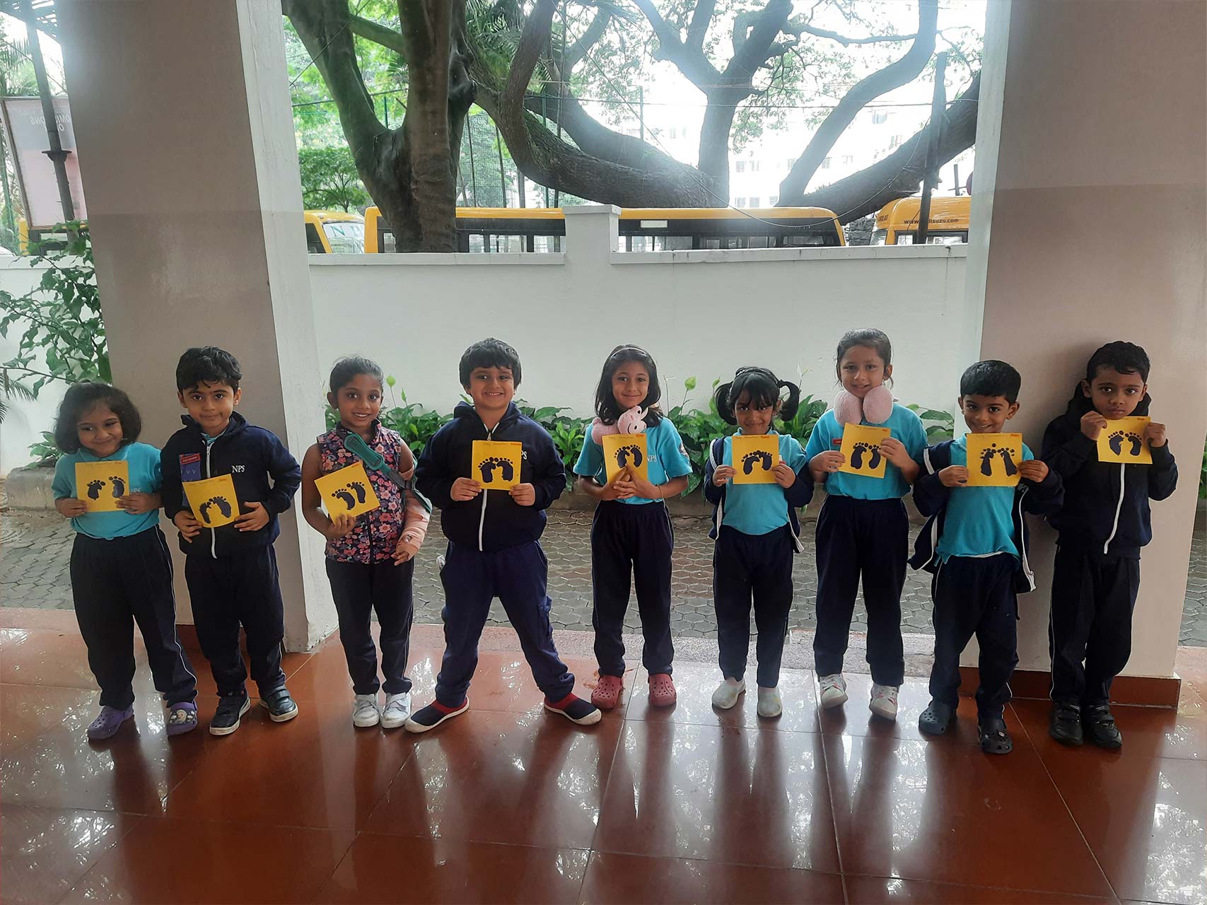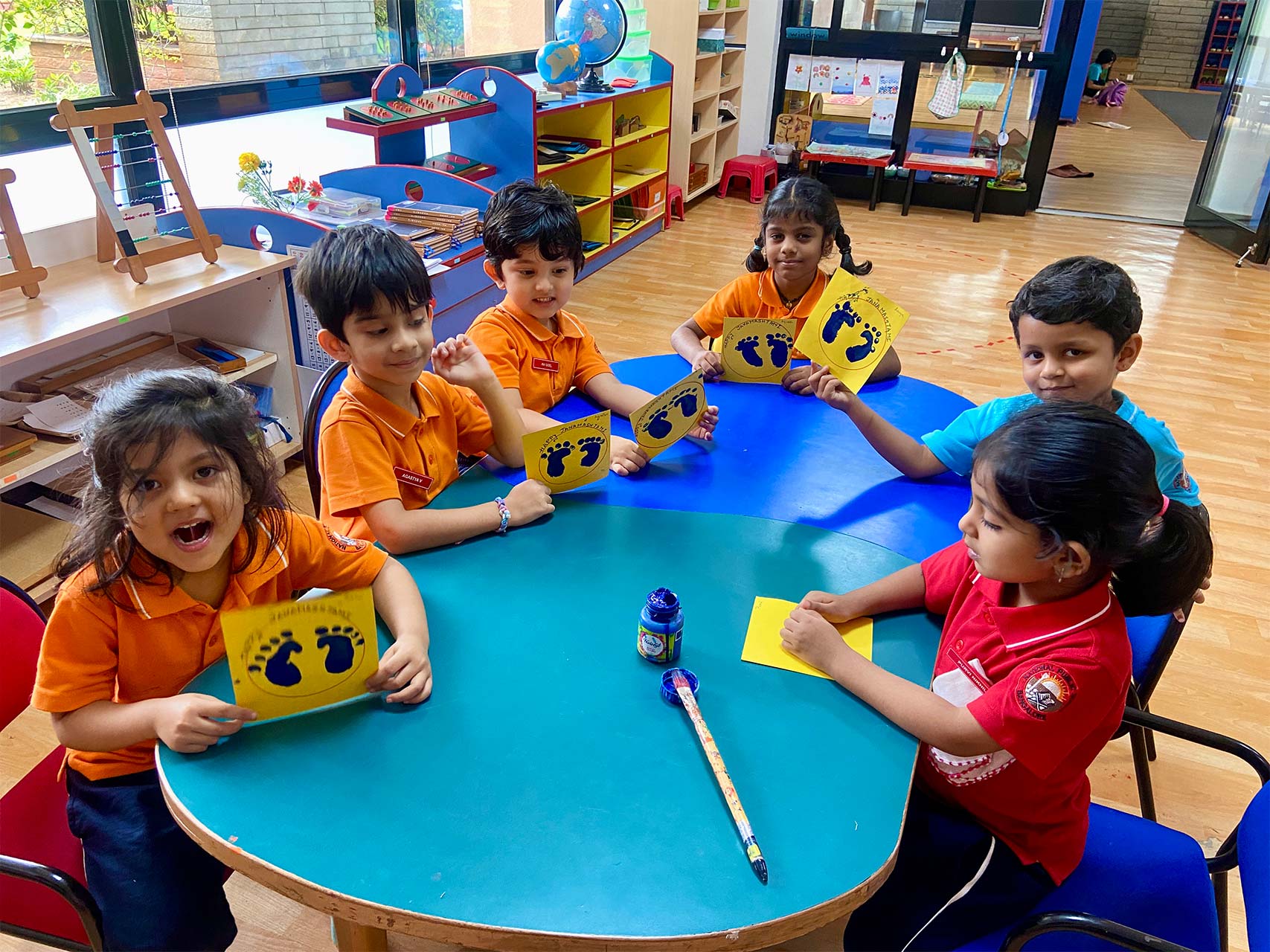 The children made handprints to depict Little Krishna’s feet. They also learnt a child-friendly song about Krishna with a catchy tune. Some of the children were heard singing it all day as they worked, too!