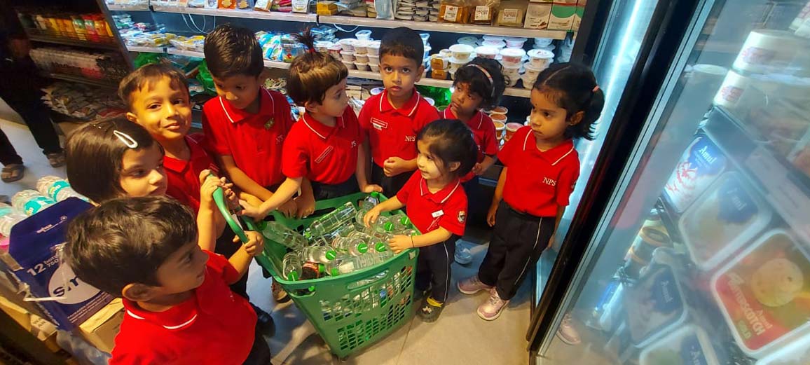 On 5 November 2025 the Montessori Freshers went to Namdhari supermarket for a field trip. Everyone was very excited as we boarded the bus early in the morning. When we arrived, the store manager welcomed us and showed us around.