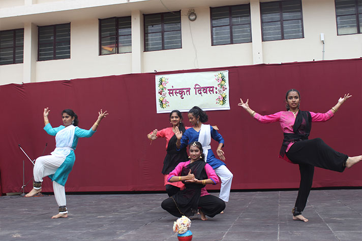 The programme started with lighting of the lamp and invocation song followed by a speech about the richness of Sanskrit, a melodious rendering of Maithreem Bhajatha,, an antakshari of Geetha shlokas, patriotic song, mythology quiz and a vigorous dance depicting Shiv Tandava.