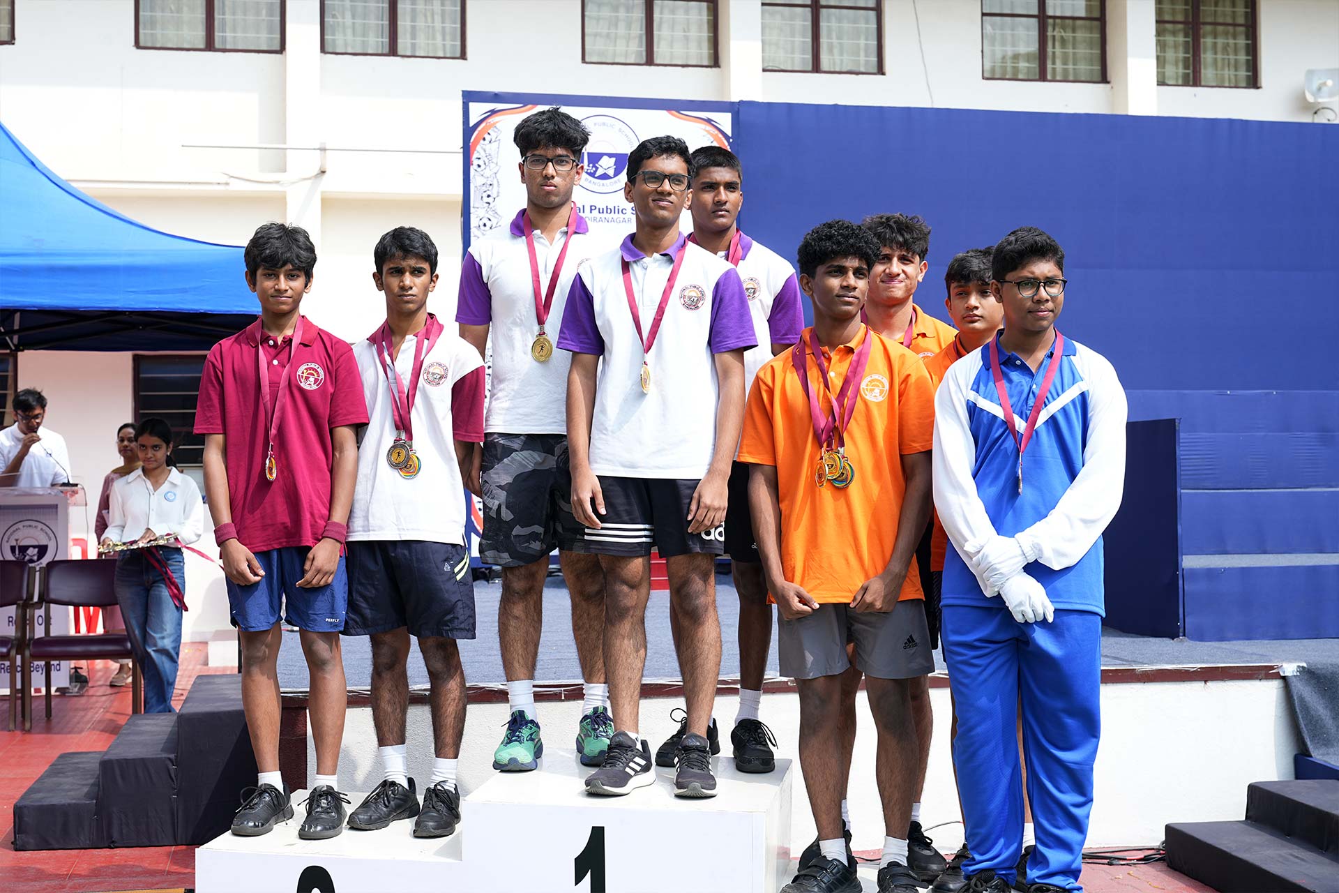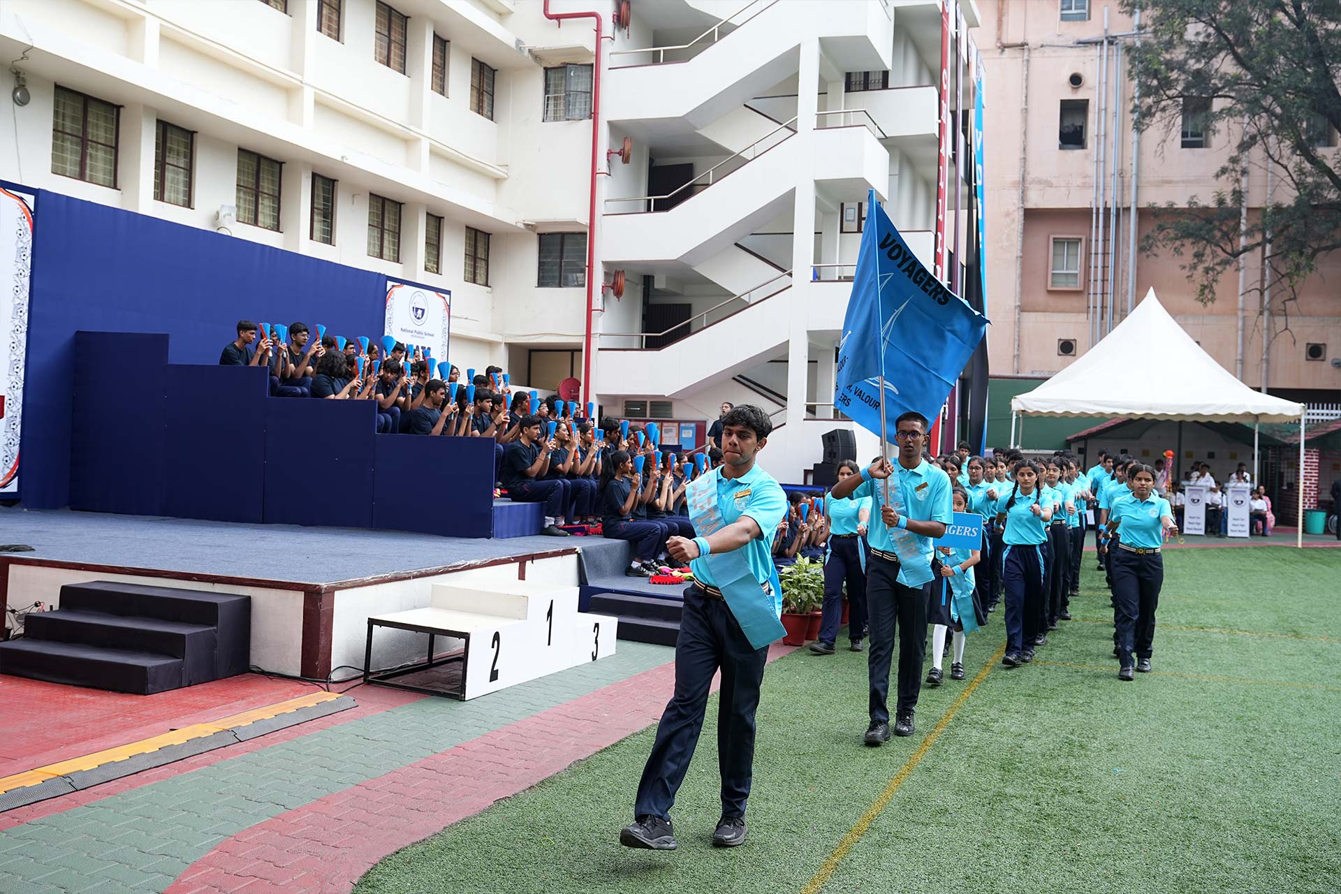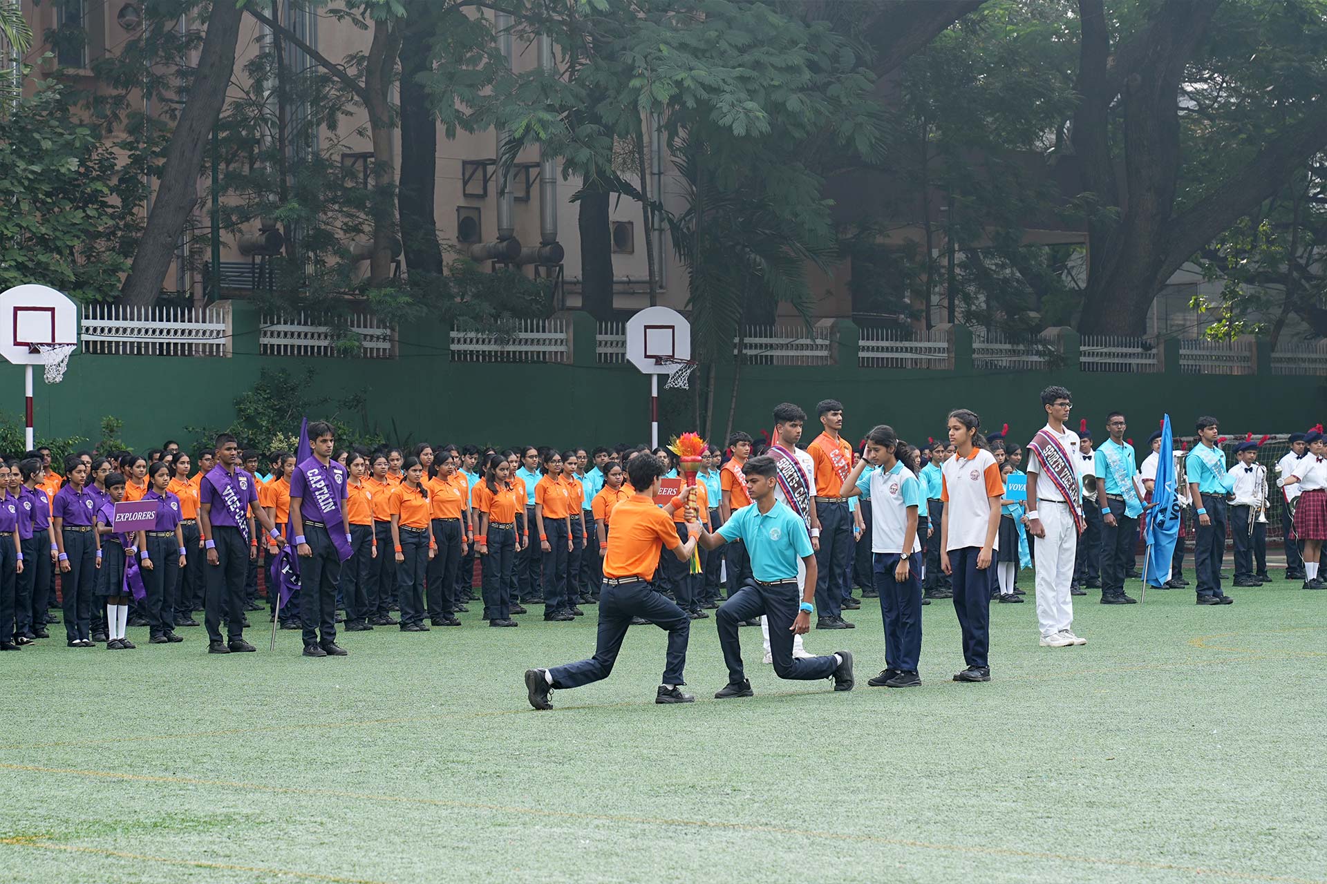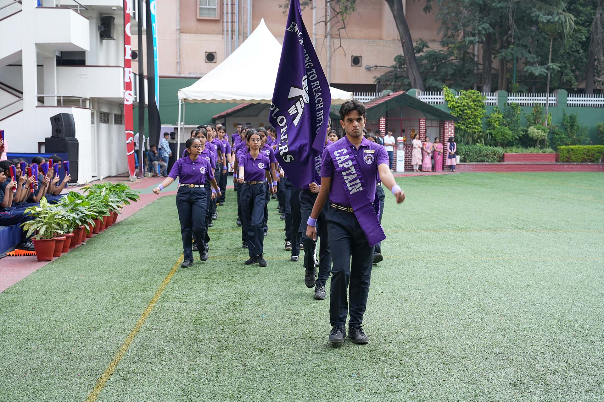 The ceremony opened with the General Salute and Torch Lighting, with the torch carried by athletes representing football, fencing, shooting, and badminton. In her welcome address, Dr Bindu Hari encouraged students to believe in themselves and remain resilient, while the Chief Guest highlighted sports as a source of strength, perseverance, and teamwork.