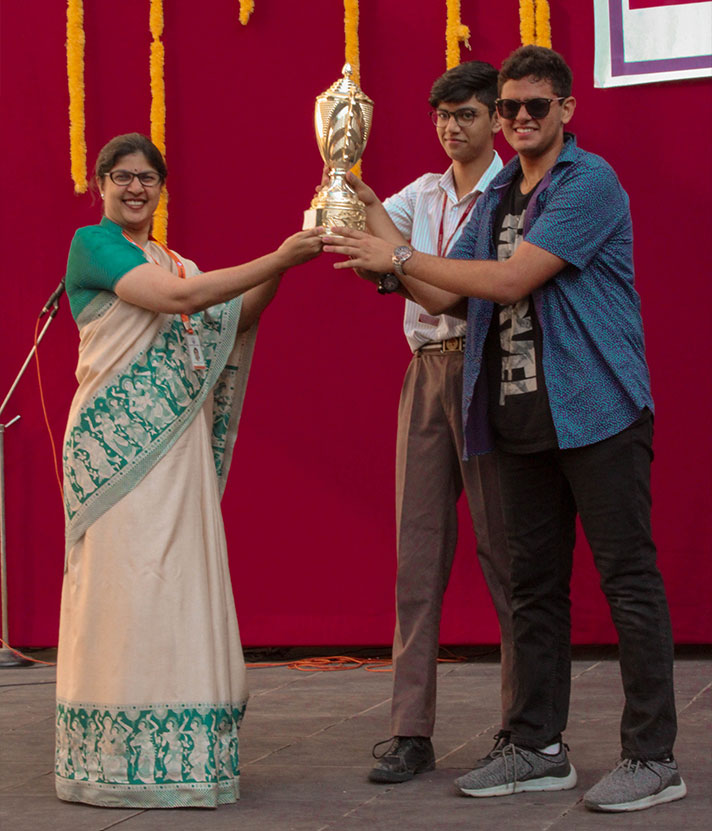 A dance medley, performed with enthusiasm and zest, by the students of class 11, entertained the audience during the celebration, before things moved in the direction of House points, and the winners of 2019-2020. The victorious House, with the highest points tally, this year, was The Voyagers House with a tall score of 2645 points. Not too far behind, the other 3 Houses scored as follows: Challengers – 2529 points; Pioneers – 2338 points and Explorers – 2243 points.